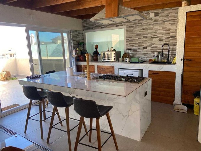 En azotea quincho cerrado con termo panel , juego de terraza , isla con encimera a gas, mucho espacio para guardar , lavavajillas es ideal para juntarse con amigos y familia .