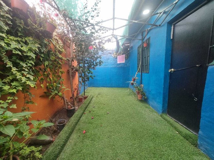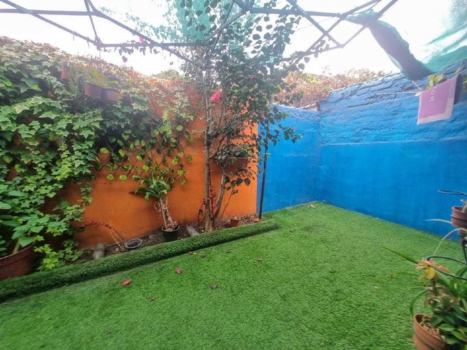 - Lindo patio trasero con pasto sintético.