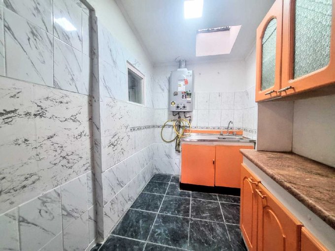 - Cocina separada, con muebles de almacenamiento y conexión a lavadora.