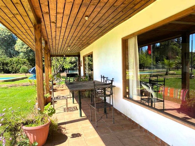 Amplia y cómoda casa inserta en una parcela de agrado en venta en Pelarco, Chile, a tan solo 2,5 kilómetros de ruta 5 sur por camino completamente asfaltado.