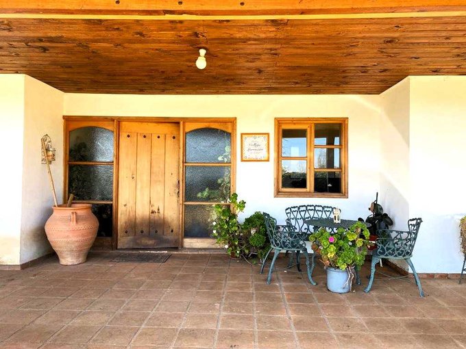 Casa principal de 300 m2 construidos más corredores. 6 dormitorios (uno en suite con walk in closet), 3 baños completos, living, comedor, sala de estar, escritorio, amplia cocina, comedor de diario, estar de cocina, logia, calefacción a leña, bodega, terraza y piscina.