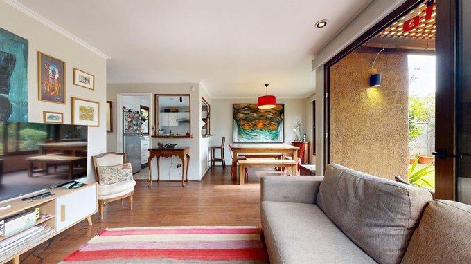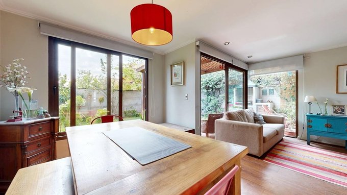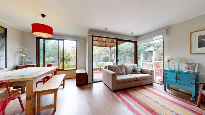 Living comedor con terraza y patio buena iluminación.