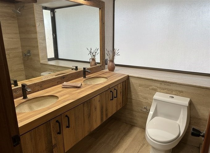 La casa cuenta con 5 dormitorios y 4 baños, brindando comodidad y espacio para todos sus habitantes.