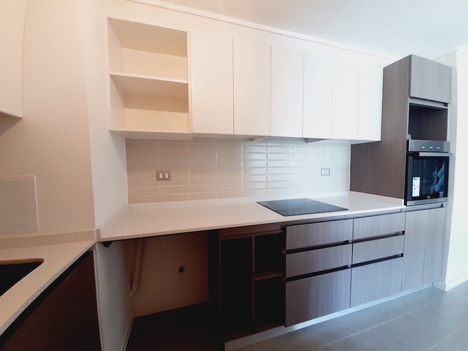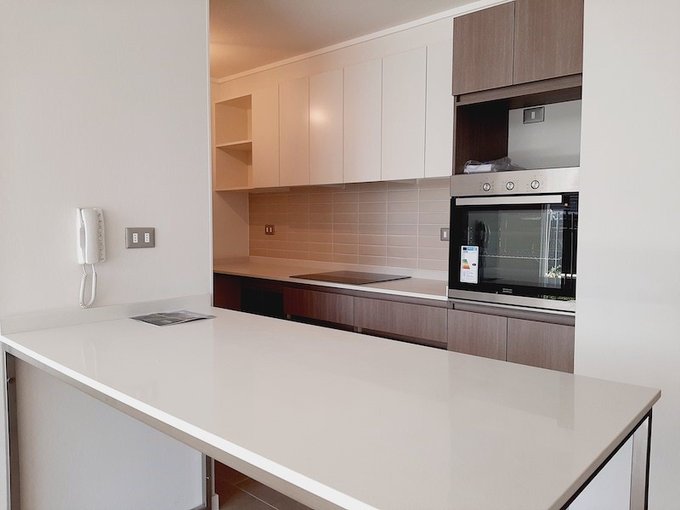 Se arrienda departamento con patio privado de 2 dormitorios 2 baños más sala de estar, en sector residencial de Peñalolén. Emplazado en primer piso, cuenta con cocina equipada con encimera vitroceramica, horno y campana eléctrica, destaca su jardín de uso y goce exclusivo.