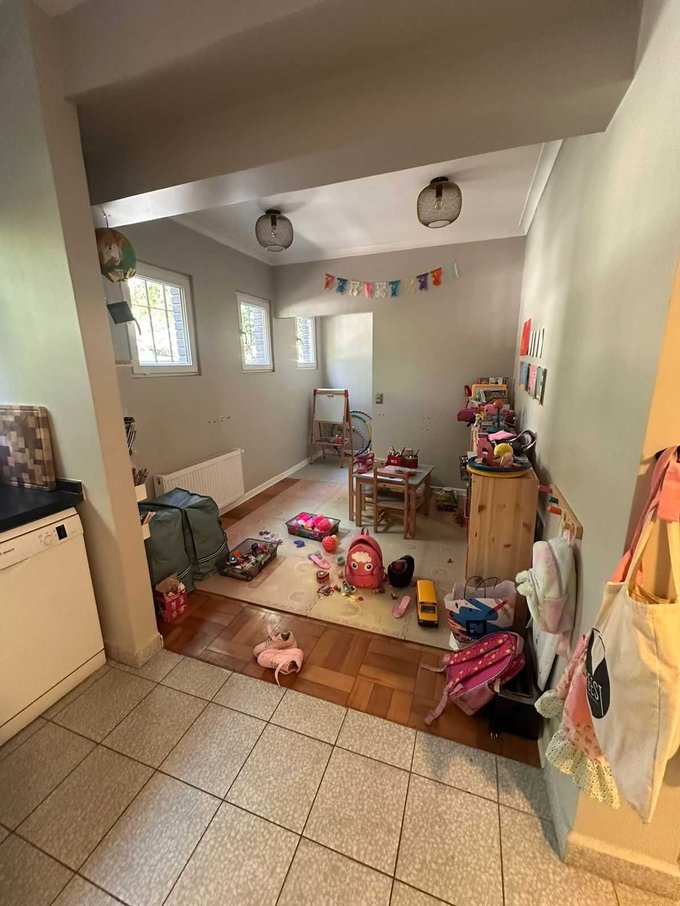 El 1er piso consta de hall de ingreso, baño de visitas, living comedor con salida a bien aprovechado patio con lindo trabajo de paisajismo, gran cocina, con espacio multiuso: comedor, de diario, salita o estar (antes era dormitorio de servicio).