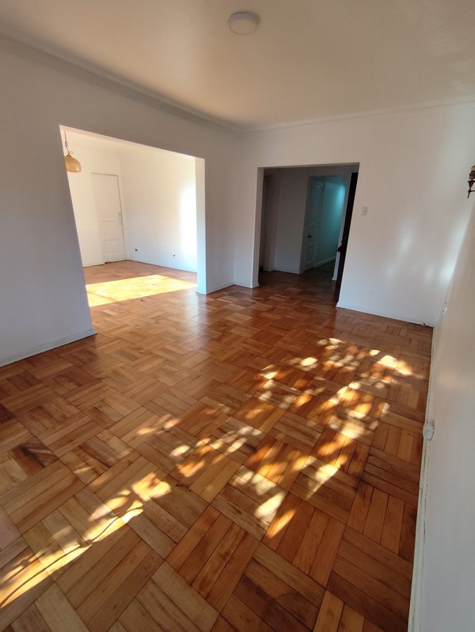 Distribución: Amplio living comedor separado, espaciosa cocina, logia con conexión a lavadora, 3 dormitorios de muy buen tamaño (uno de ellos con terraza hacia el oriente) y un baño completo, dormitorio de servicio más baño. Patio de luz. Todo el departamento con piso de parquet recién renovado. La propiedad se ubica en el piso 2 sin ascensor. Los gastos comunes: $50.000 fijos más consumo de agua. NO tiene estacionamiento ni bodega.