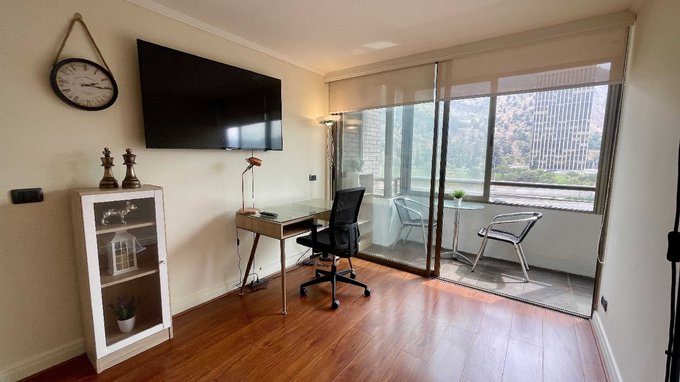 - Living con TV, escritorio con silla y dos silla de comedor