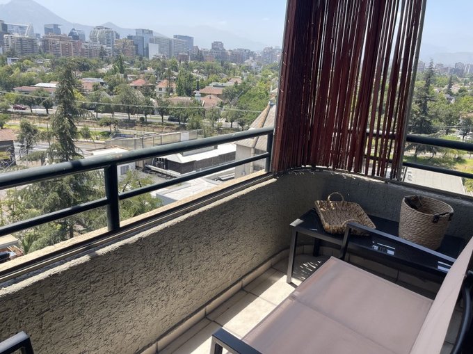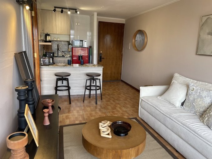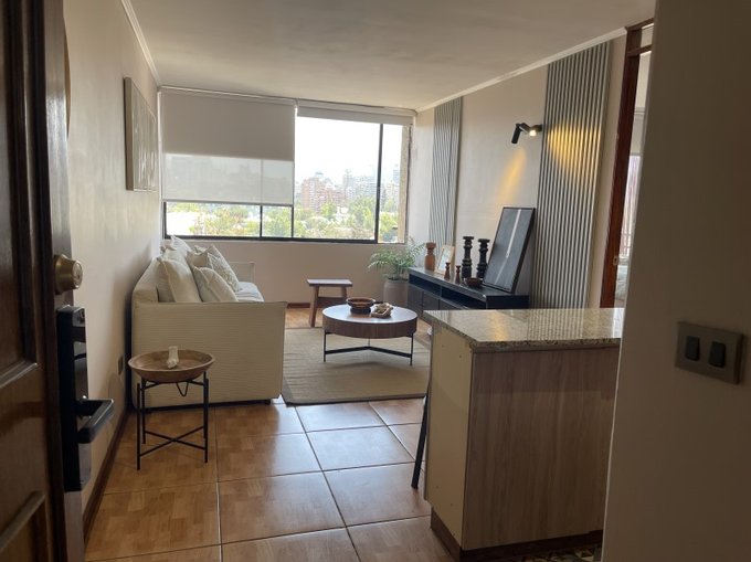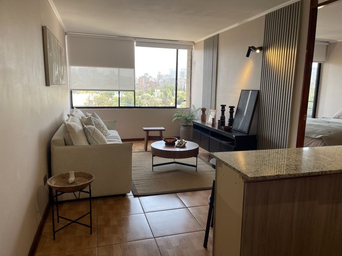 Lindo departamento completamente amoblado y equipado en piso 10 en seguro edificio en calle Orquídeas muy tranquila en Barrio Las Lilas, el mejor barrio de Providencia límite con Las Condes, cerca de Metro Colón