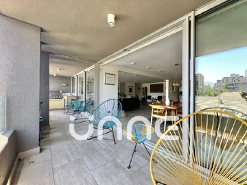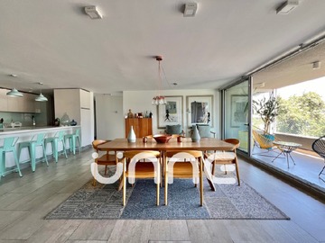 Moderno casi nuevo departamento con orientacion norte. Muy amplio living y comedor con salida a la terraza. Dos dormitorios en suite uno con walk-in clóset y otro con gran closet y salida a terraza y jaccuzi. Otro 3 dormitorio con amplio closet y baño con luz natural. 4. baño de visita. Cocina americana full equipada con horno, campana, encimera, microonda todo marca Bosh, loggia conexión para lavavajillas y lavadora, además modernas terminaciones. Todos los baños con luz natural, 3 completos y uno de visita. Ventanas termopanel. 4. cuarto oficina, es un espacio abierto, no es un dormitorio, sirve para escritorio.