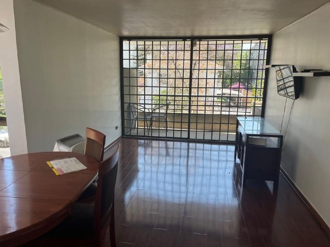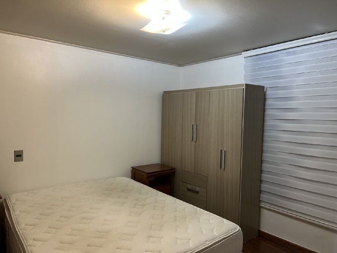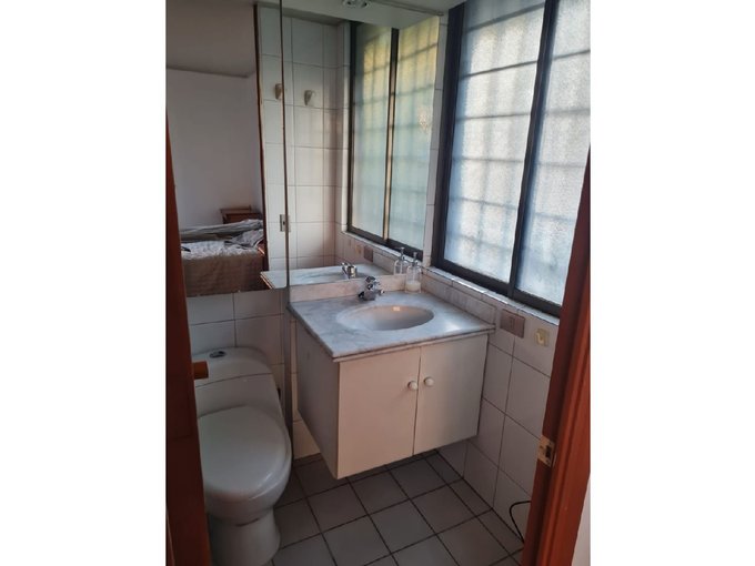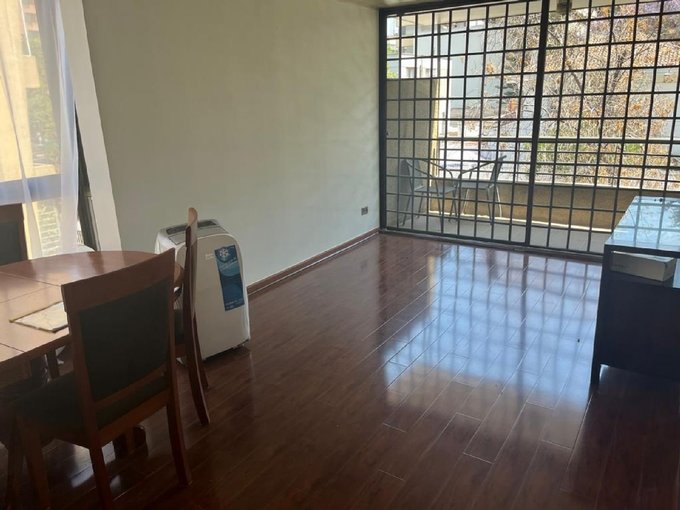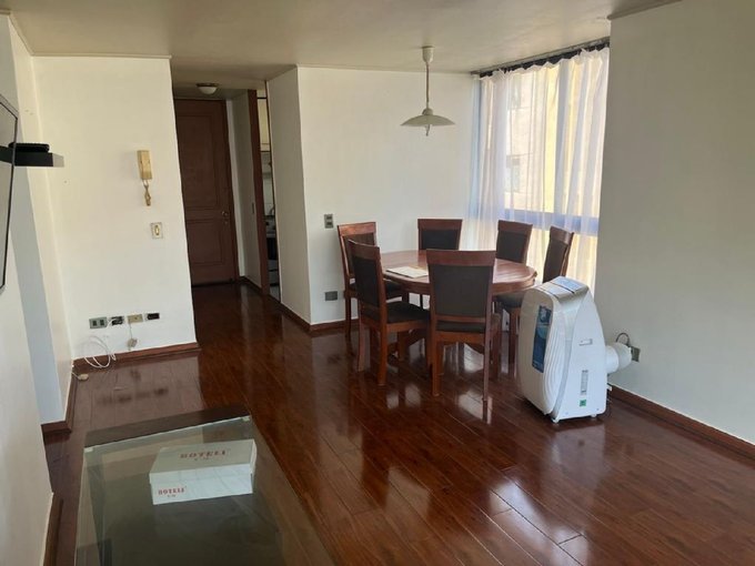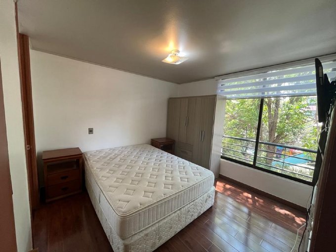 Departamento semi amoblado en excelente ubicación, a pasos de Metro Pedro de Valdivia y con rápida conexión a supermercados, farmacias, colegios y bancos. Distribución cómoda: dormitorio principal en suite con walk-in closet, mueble adicional de clóset, cama de dos plazas y TV. Segundo dormitorio de 2,5 x 2,5 m, con escritorio; cabe cama de una plaza y cuenta con clóset. Segundo baño en pasillo con conexión a lavadora pequeña / no incluida (sin ducha para bañarse).