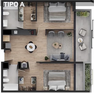 2 DORMITORIOS 2 BAÑOS
