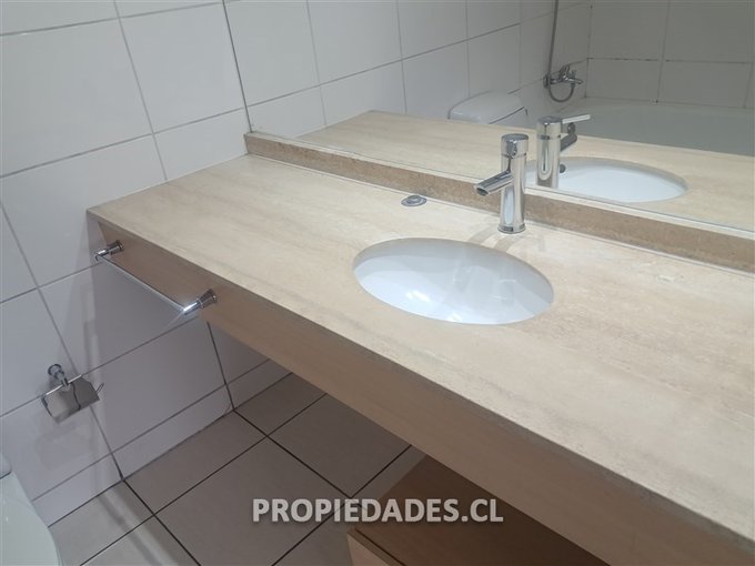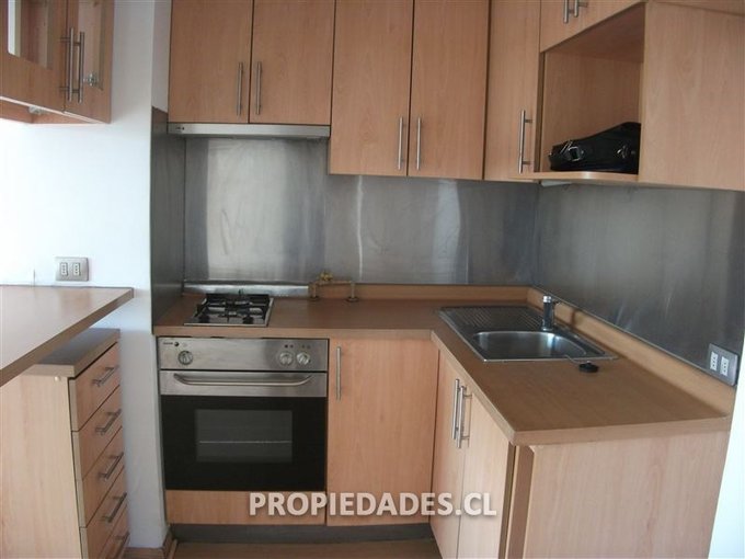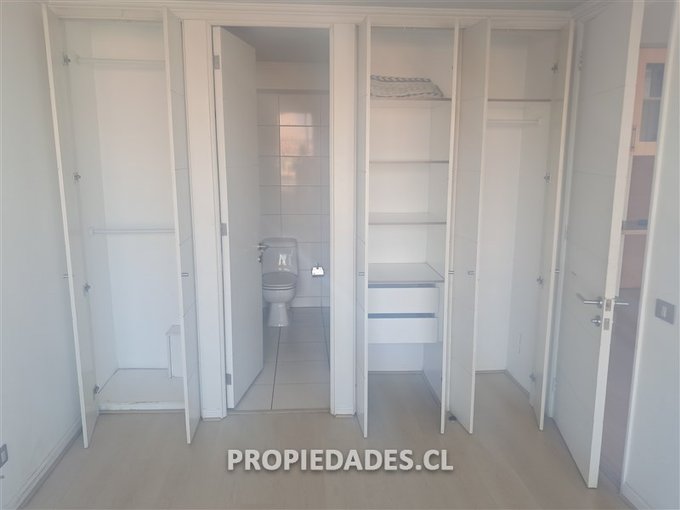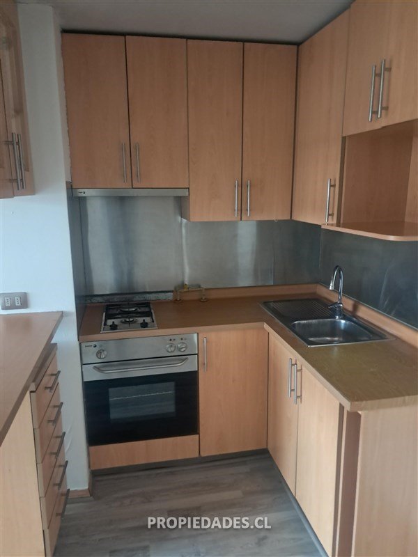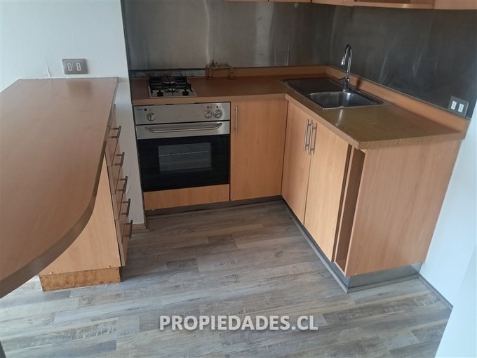 Departamento de 1 dormitorio, 1 baño, bodega, estacionamiento, balcón, piso flotante, encimera, horno eléctrico, campana.