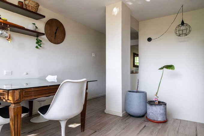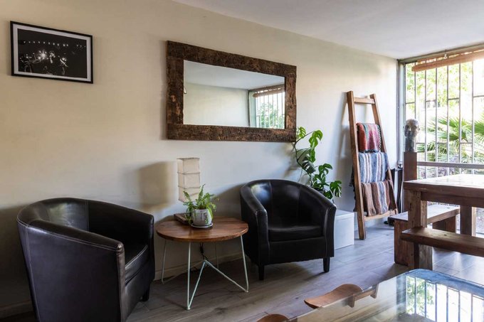 A este departamento dúplex de 100 mts2, se accede por los dormitorios. Originalmente eran dos y después de una remodelación, se mantuvo sólo uno grande, un baño completo, un walk in closet y una agradable sala de estar.