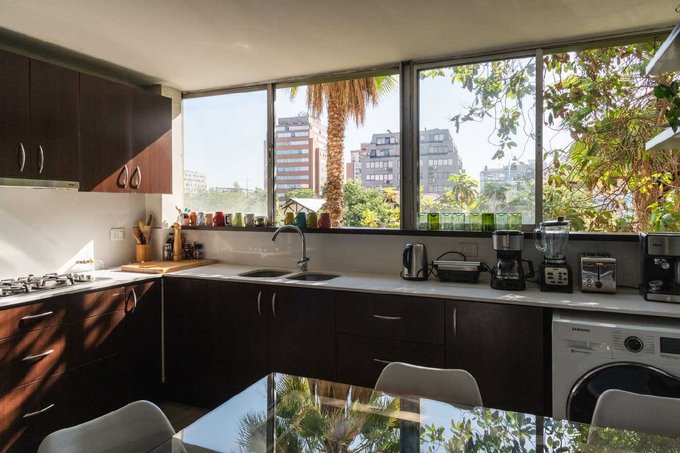 En el segundo piso encontramos una agradable cocina con modernos muebles, una mesa de comedor para seis personas y vista a la ciudad.