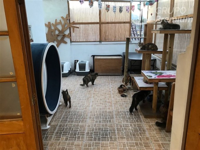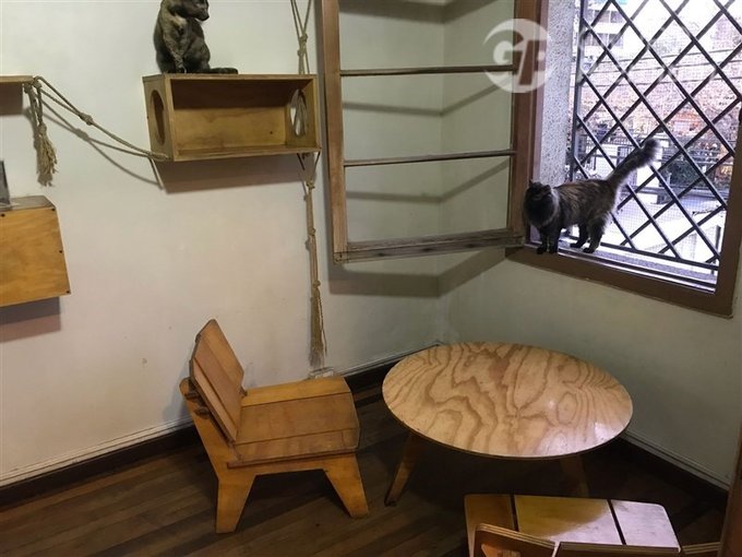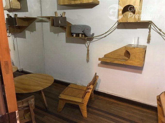 Distribución en tres pisos, adaptada para cafetería y en pleno funcionamiento.