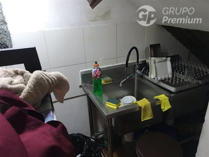 Primer Piso: Cocina equipada, barra de atención y baño.
