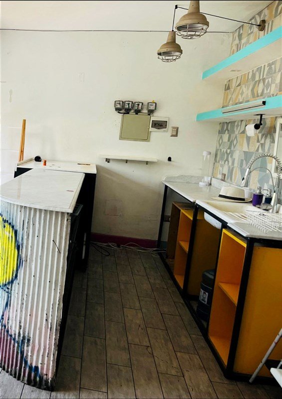 Una planta libre , más otras dos áreas grandes , cada área con cocina americana, muebles de cocina, encimera, lavaplatos, en un gran espacio, con termo individual, más baño con ducha cada uno y una oficina . Toda la casa termo panel.