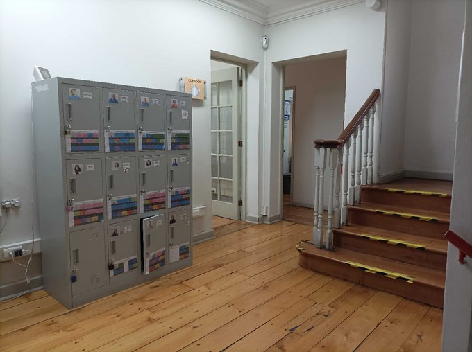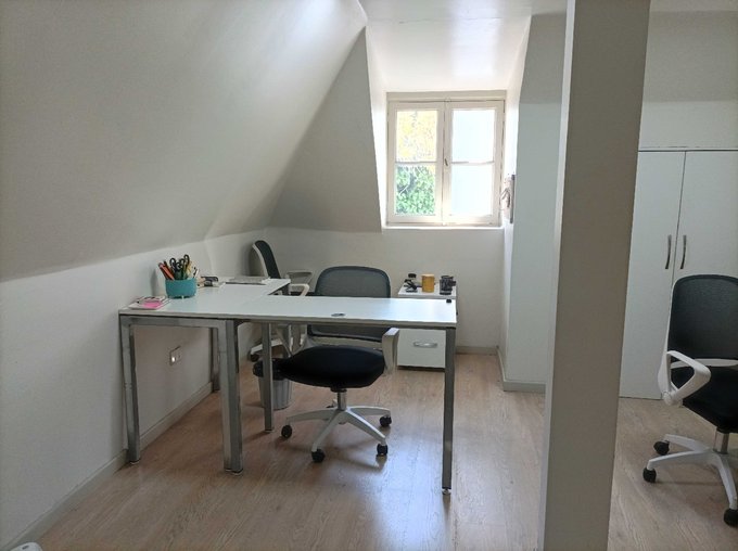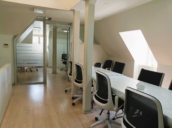 Cuenta con recepción, 8 privados, 4 baños, áreas de trabajo comunes, cocina, comedores, hermoso patio posterior, bodega.