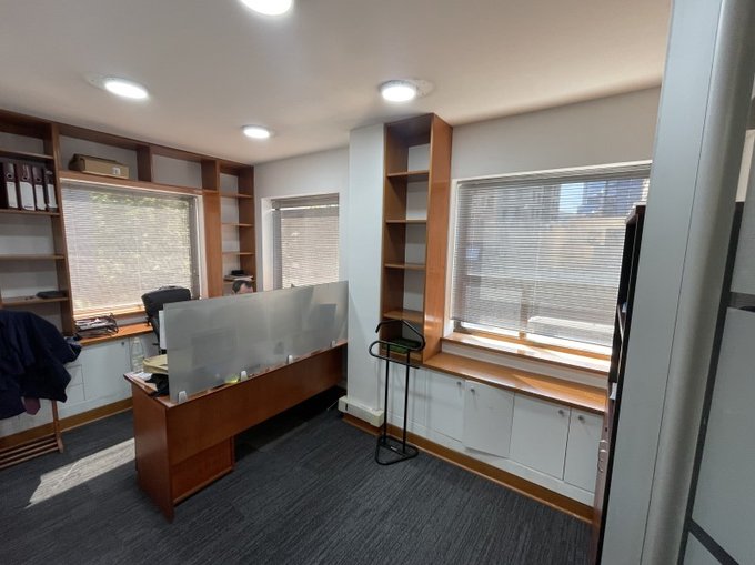 Consta de 4 privados y sala de reuniones o 5 privados, algunos se puede modificar la tabiquería según requerimiento para espacios más grandes