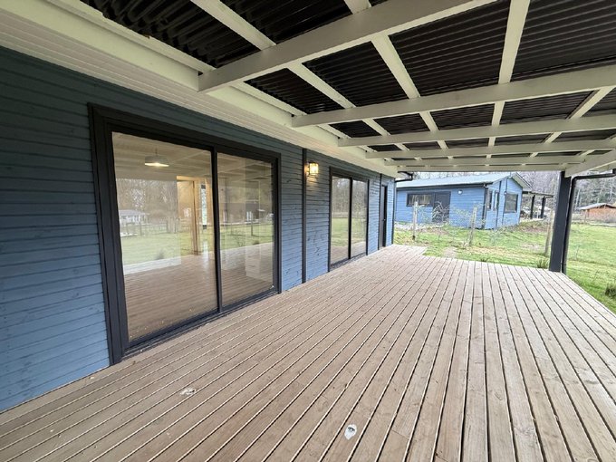 Una terraza cómoda y techada permite el disfrute tanto en verano como en invierno, brindando un espacio versátil para momentos de relajación y convivencia.