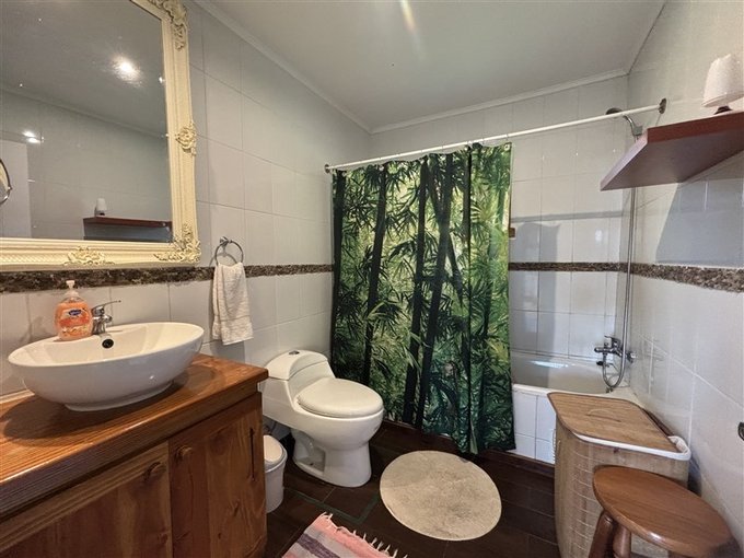 Baño 2: Ducha con tina agua caliente, lavamanos, inodoro