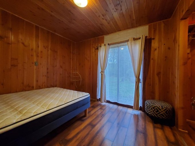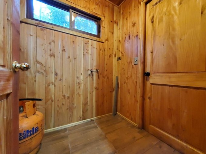 La casa está compuesta por 1 piso de distribución en "T", con amplio living-comedor, cocina americana amplia, 2 dormitorios y 1 baño en un "ala" y 2 dormitorios y 1 baño más una pequeña bodega en la otra "ala". Se entrega con todo el equipamiento que aparece en las imágenes y video.