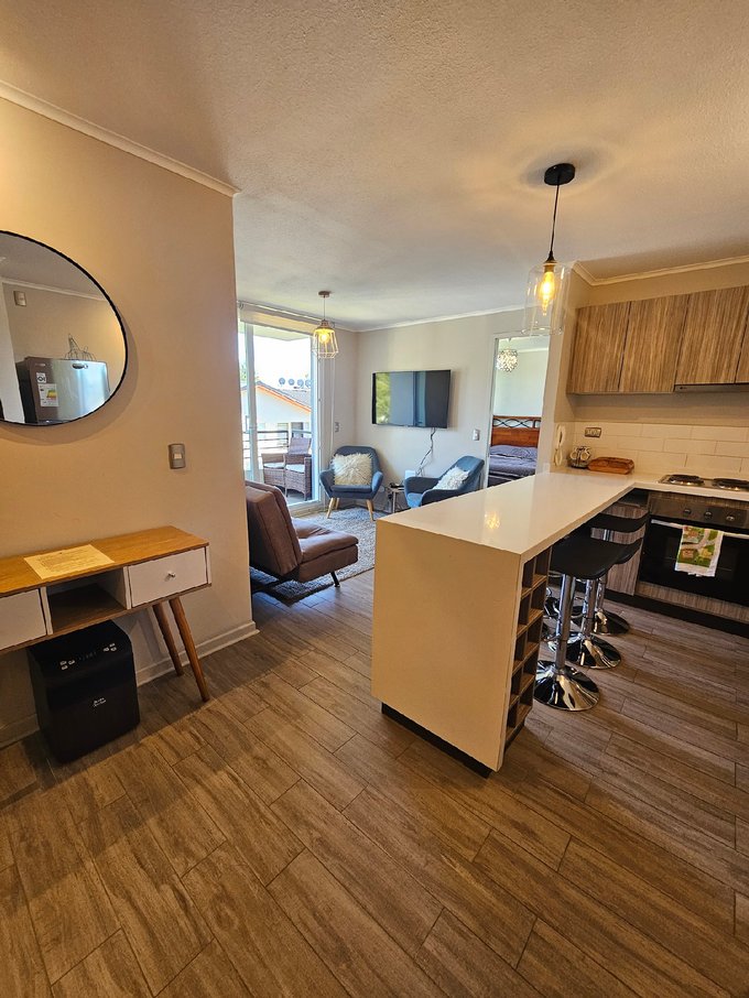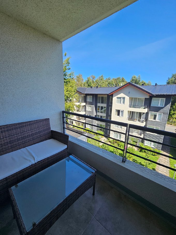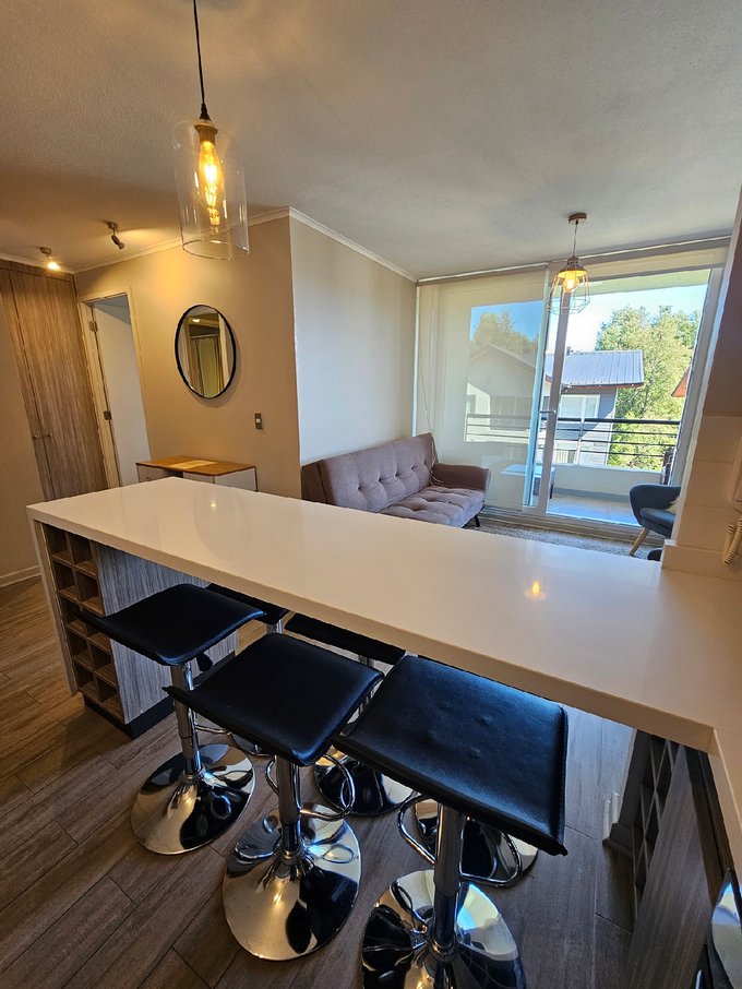 Valmanic Propiedades arrienda año corrido un acogedor y cómodo departamento de 2 dormitorios y 2 baños, completamente amoblado, emplazado en un cuarto piso con ascensor. Con orientación poniente y terminaciones de alto estándar, este espacio ofrece calidad, diseño y un entorno natural único, cercano al centro de esquí y a minutos de los principales atractivos de Pucón.