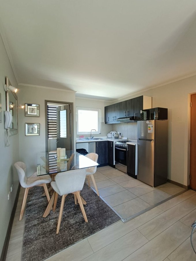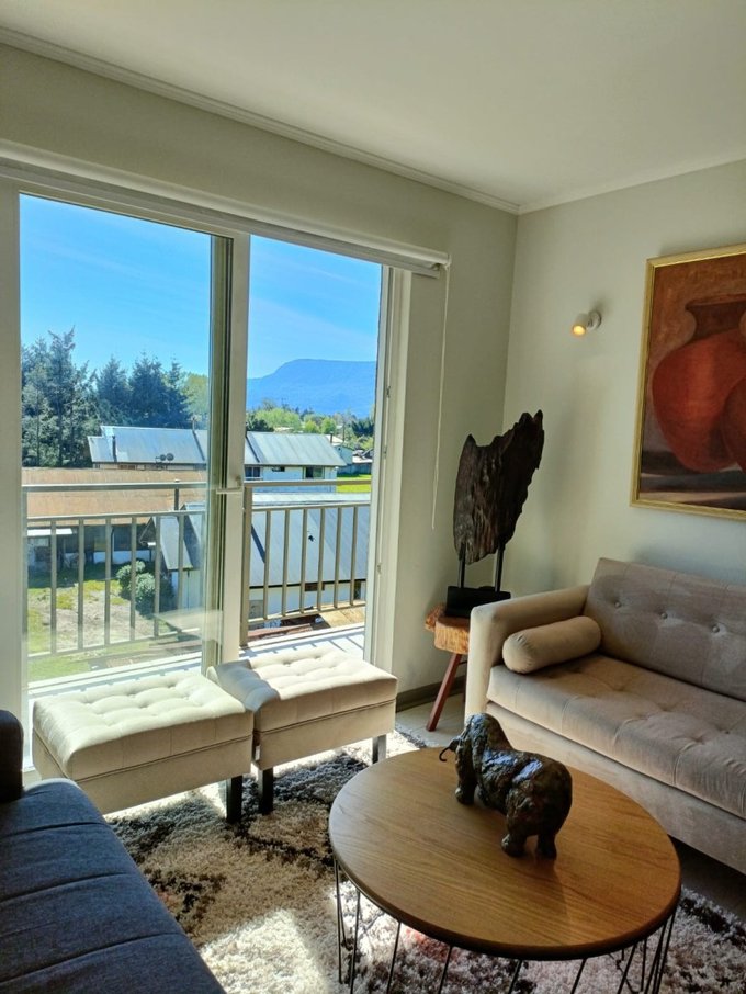 Vive a solo 5 minutos del centro de Pucón en este hermoso departamento full equipado, con una vista privilegiada al volcán . Ubicado en el 3er piso de un edificio del 2019 (4 pisos), ofrece el equilibrio perfecto entre comodidad y buena ubicación.