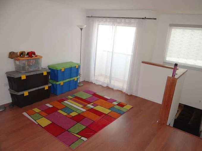 Sala de estar con salida a pequeño balcón.