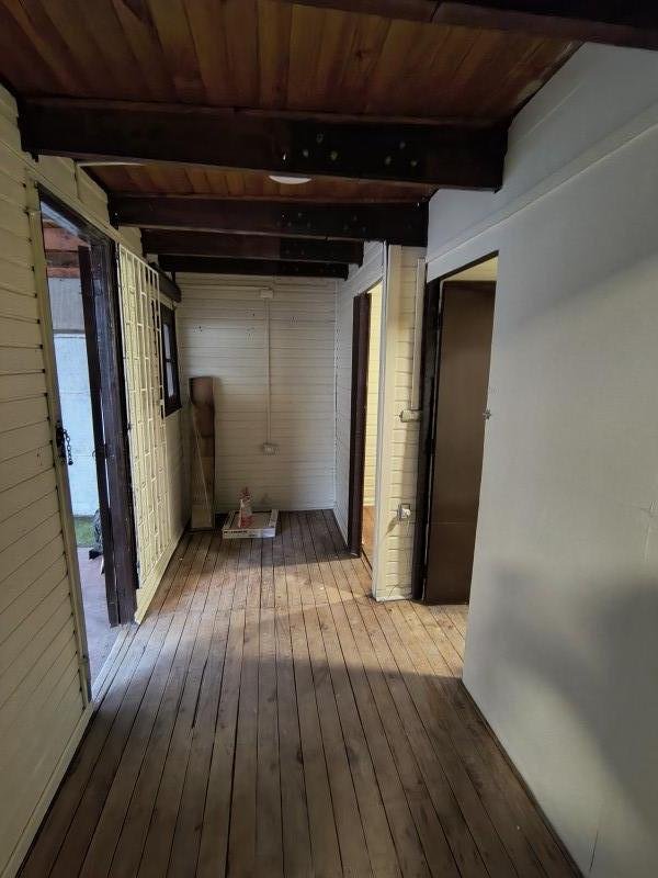 La casa tiene entrada para un auto, living comedor, cocina, 3 dormitorios (uno en primer piso) una bodega, pequeño patio lateral con cobertizo