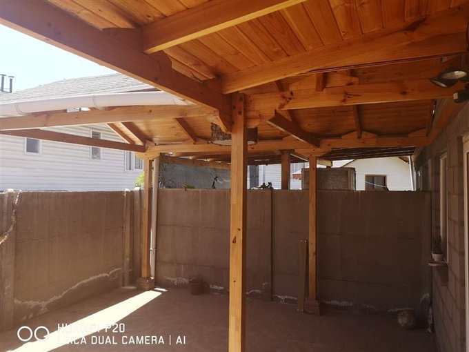 La casa tiene terraza amplia, techada con piso cerámica.