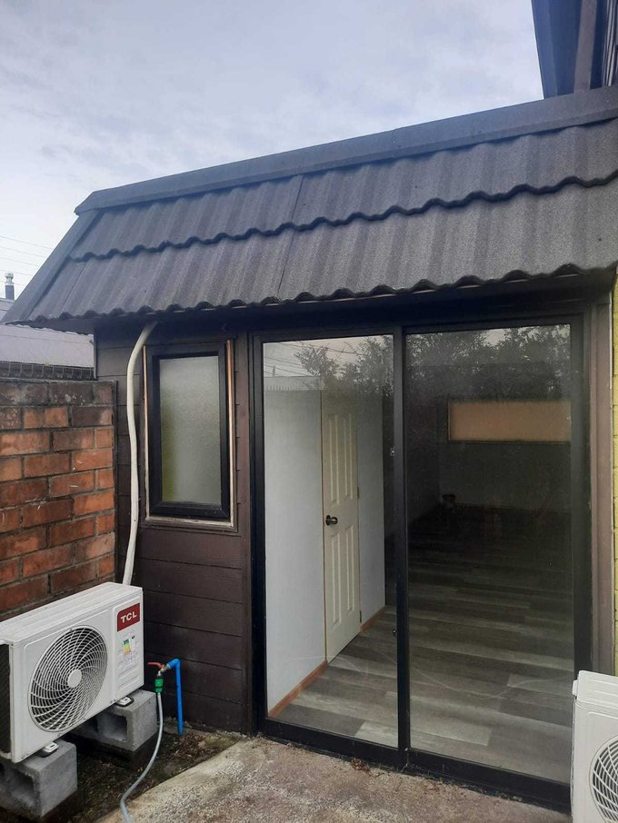 Una de las habitaciones se encuentra en la planta baja, es de buen tamaño, cuenta con baño privado y aire acondicionado, y puede ser utilizada como oficina, sala de estar o dormitorio según necesidad.