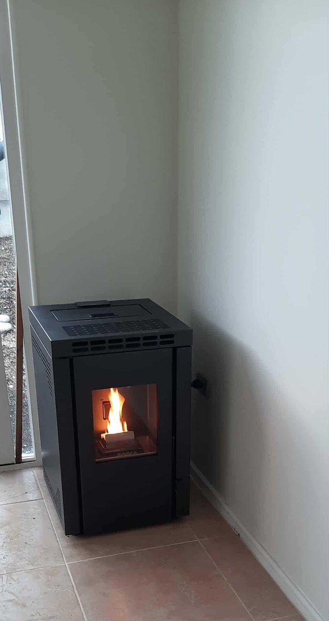 Combustión a pellet instalada.