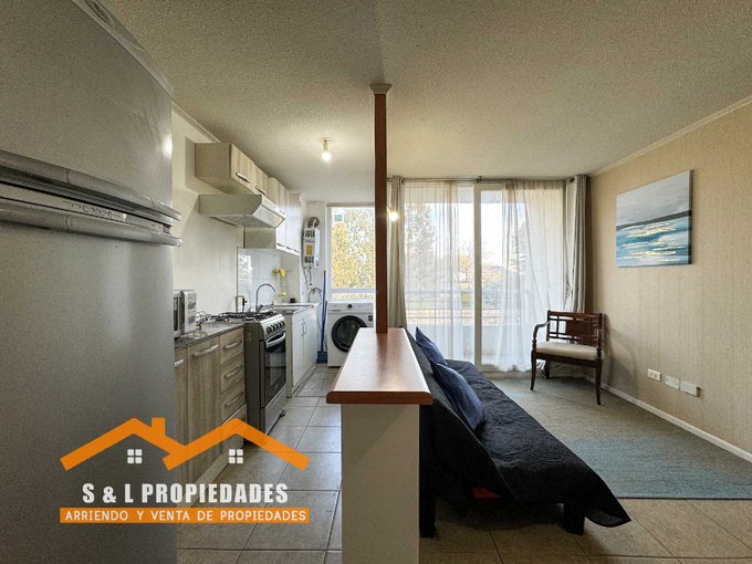 Departamento amoblado tres dormitorios, un baño, cocina americana, living comedor, lavadora secadora, ventanas termopanel, estacionamiento.