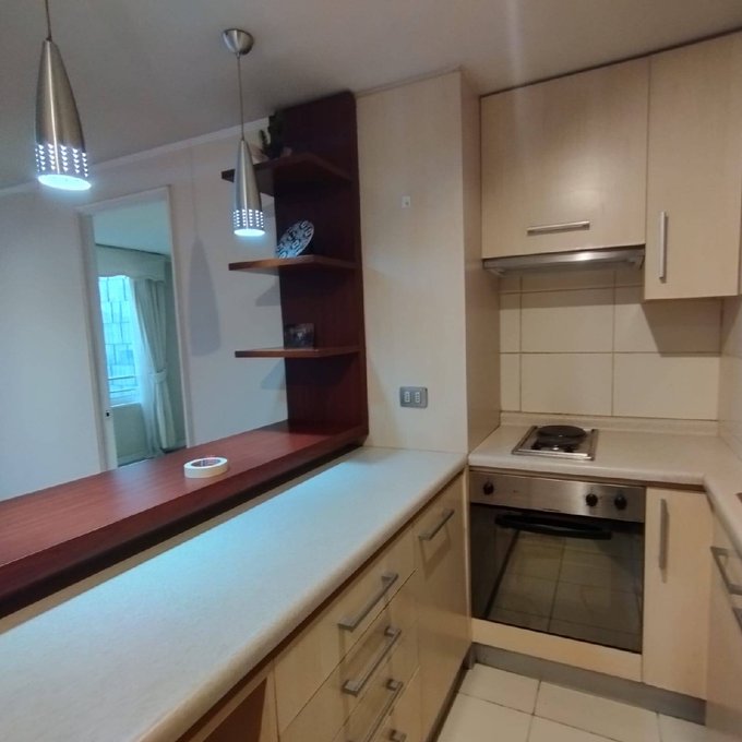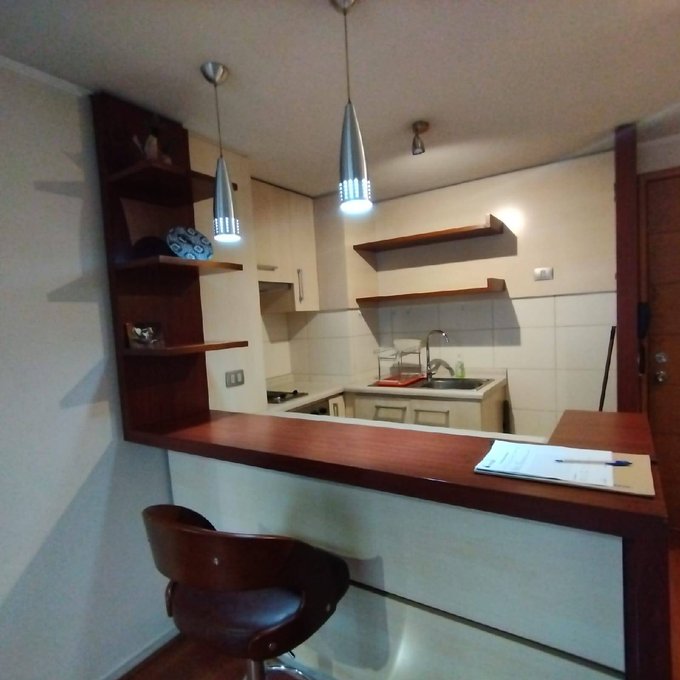 Hermoso departamento ubicado en piso siete, de 1 dormitorio, 1 baños, living comedor y cocina americana equipada con horno, encimera y campana. Ubicado en edificio en pleno centro de la ciudad a una cuadra de la plaza de armas. Incluye estacionamiento.