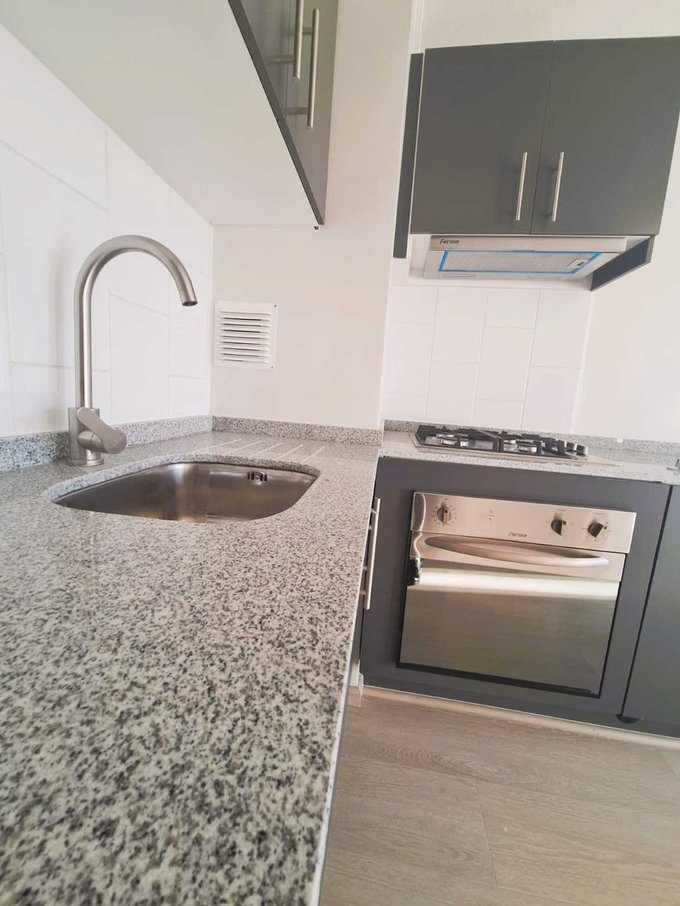 Depto con cocina equipada con; Encimera 4 platos, horno electrico, comedor de diario