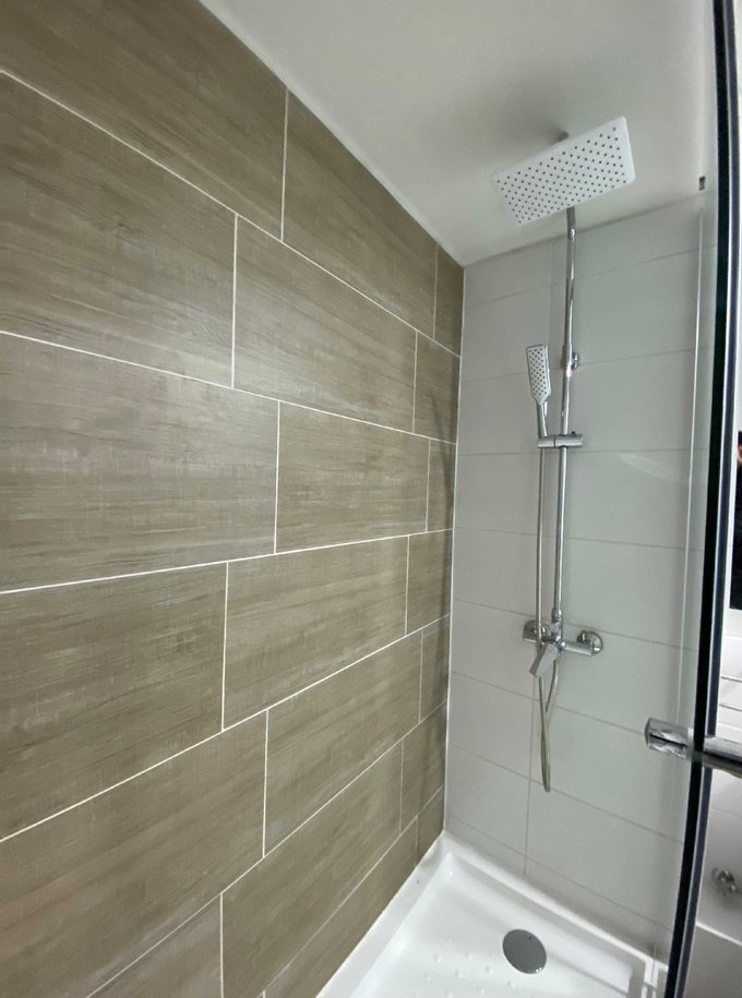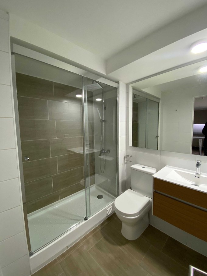 Baño con shower door