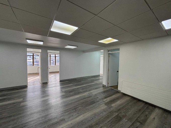 Las oficinas comparten un espacio común que incluye una sala de espera de 55,02 m y baños compartidos de 6,44 m.