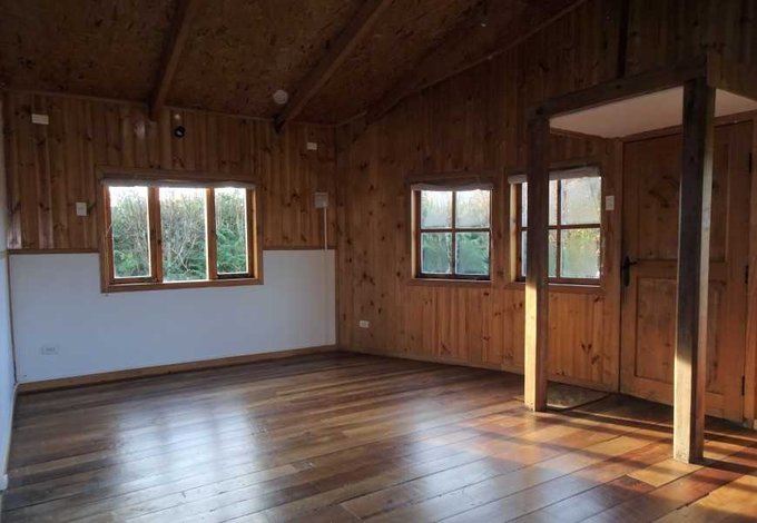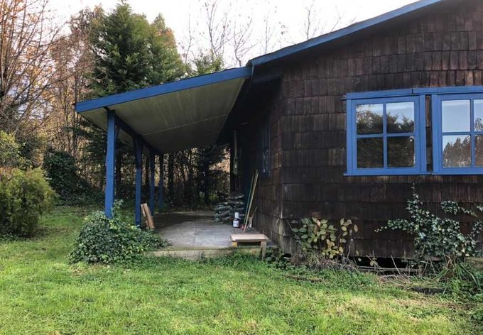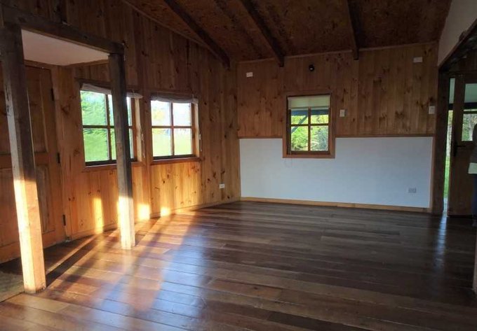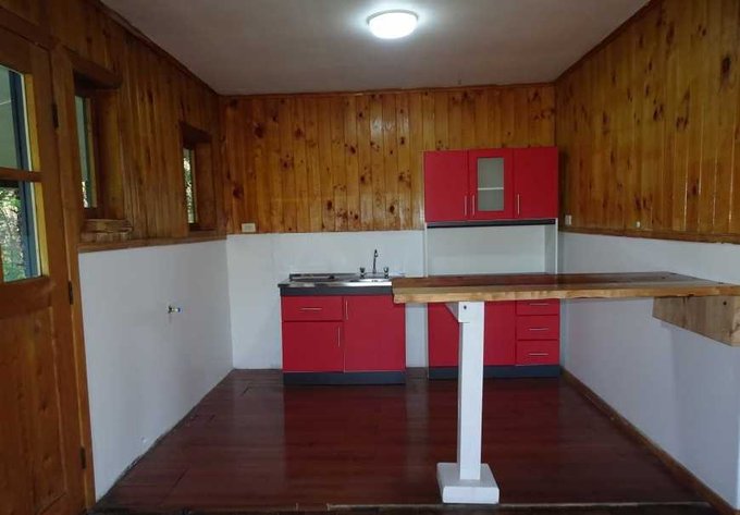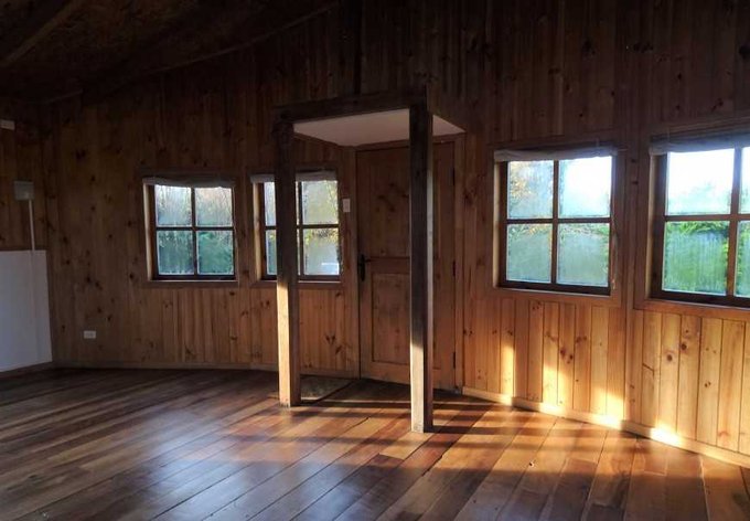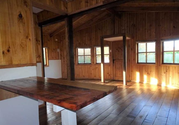 Terminaciones con madera pino, piso de laurel reciclado y tejuelas de alerce.