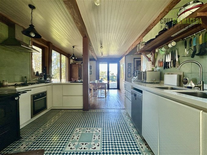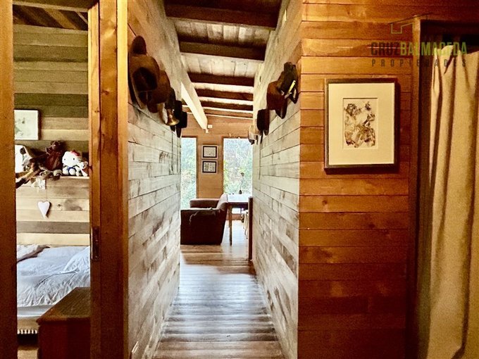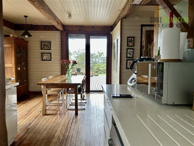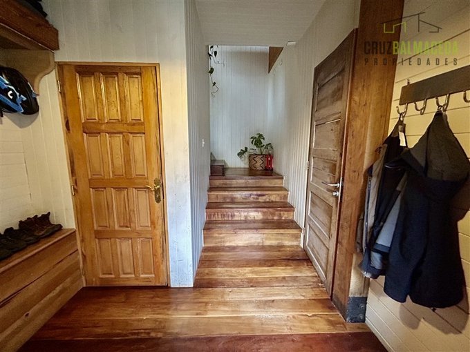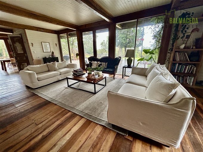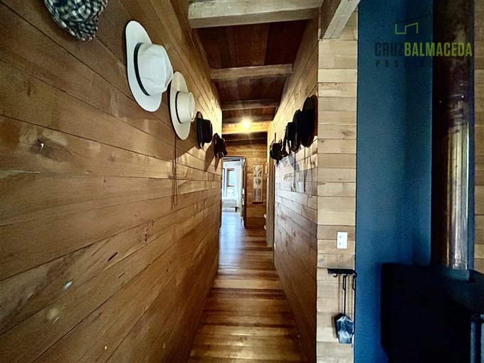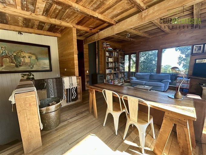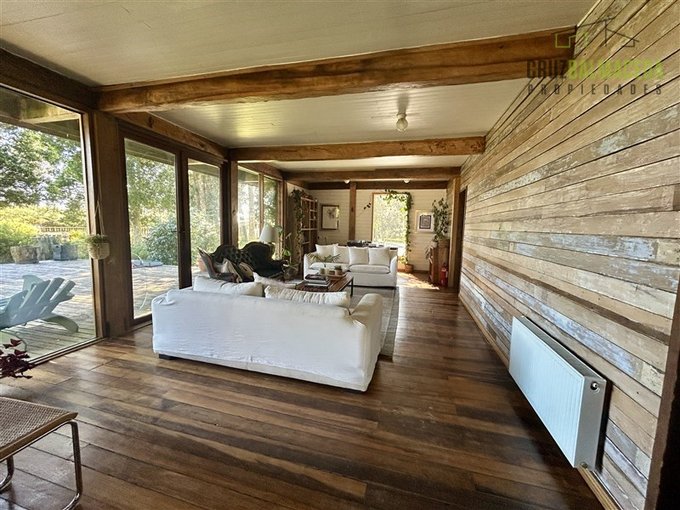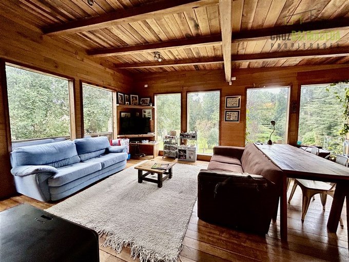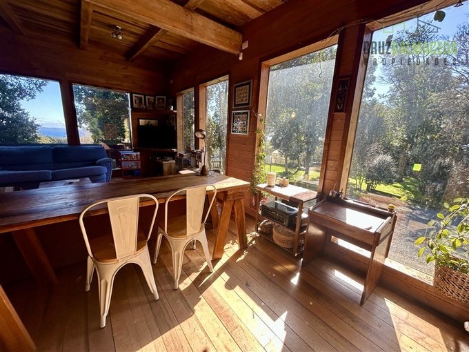 La casa cuenta con 250 m2 construidos, construida con preciosas maderas nativas, grandes ventanales lo que le proporcionan una excelente iluminación, cuenta también con un gran galpón exterior, con espacios para oficinas y baño.