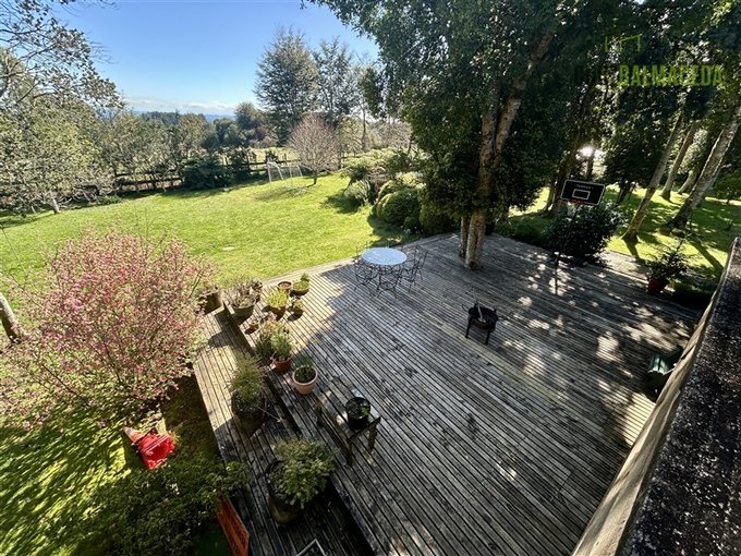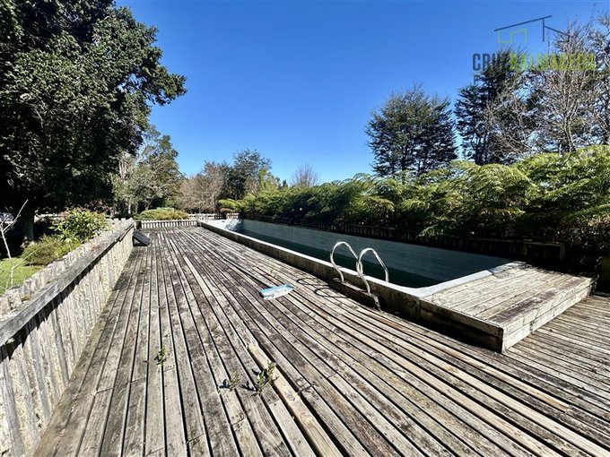 En el exterior tiene invernadero, una gran piscina de 3 x 15 metros, un deck de 60 m2 y jardín formado con árboles nativos.