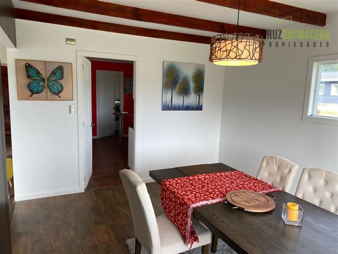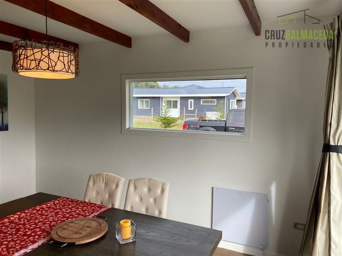 Cocina con comedor de diario, living y comedor separados, estufa a Pellet, ventanas termopanel y piso flotante.