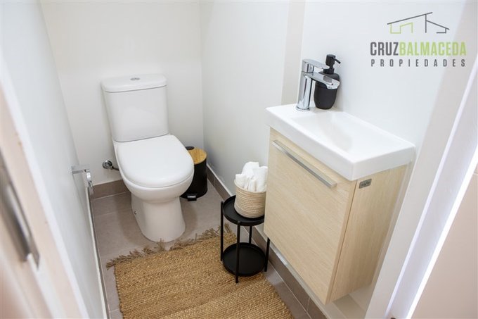 La casa tiene hall de acceso con closet, baño de visita, living comedor con cocina incorporada. La cocina viene totalmente amoblada, con cubierta de cuarzo y artefactos incluídos (horno empotrado, encimera vitrocerámica, campana), loggia cerrada con lavadero y espacio para máquinas.