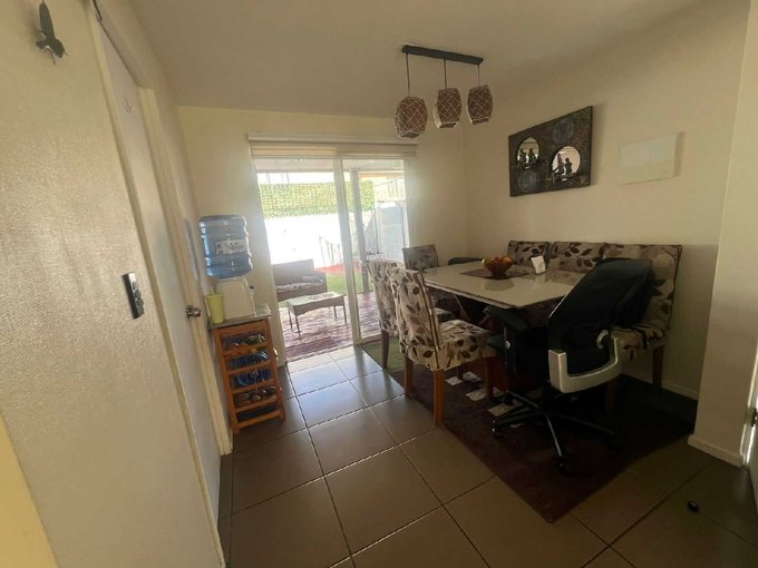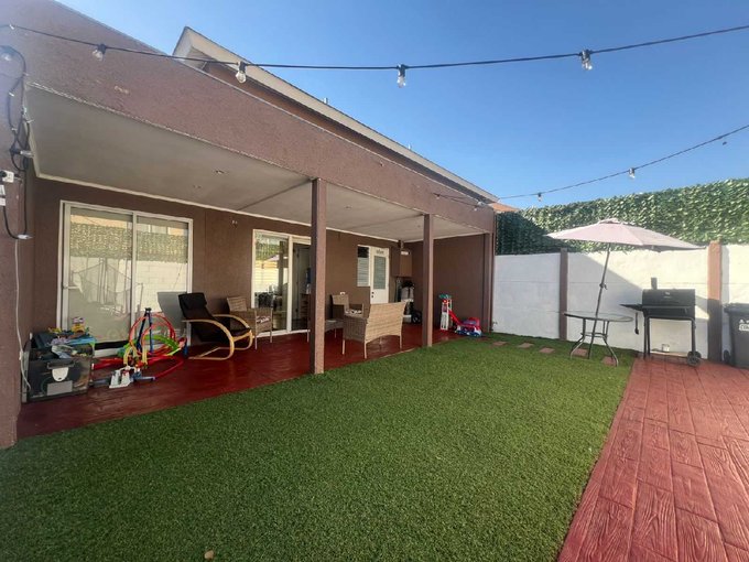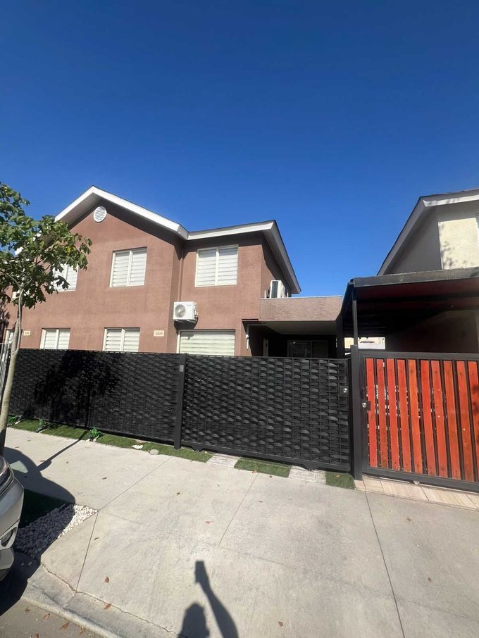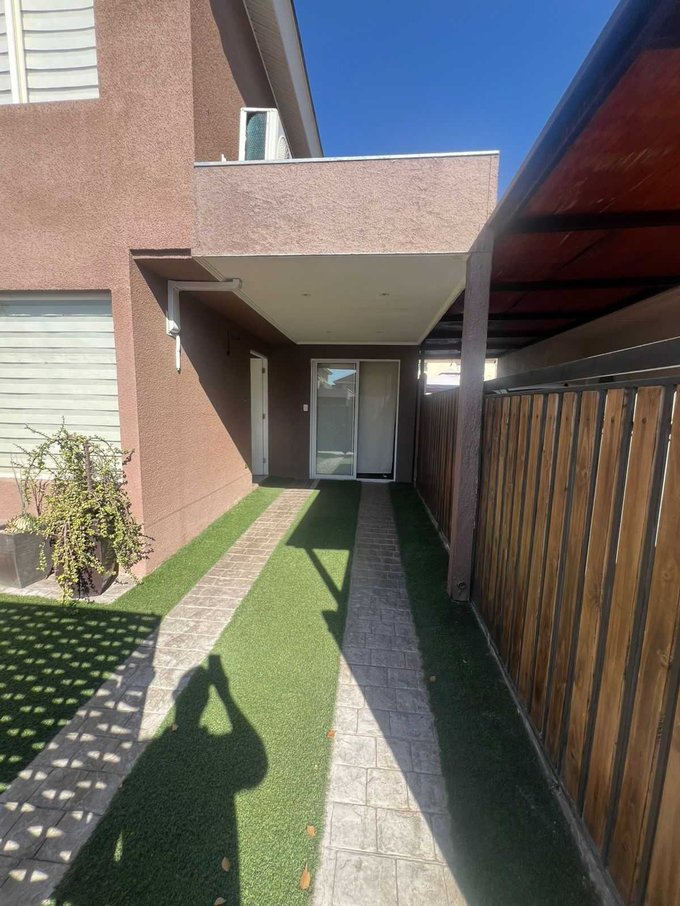 En la comuna de Quilicura en Valle Lo Campino se arrienda esta casa en condominio cerrado de 2 pisos con 3 dormitorios y 3 baños (1 en suite en dormitorio principal, otro de visita en piso 1 y otro en piso 2), cocina independiente con encimera a gas y horno eléctrico, patio, terraza, living comedor, logia con muebles, orientación oriente en patio.
