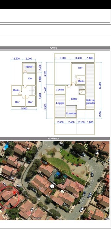 Segundo piso: 3 dormitorios, sala de estar y baño completo.