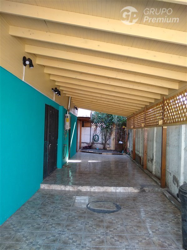 Antejardin, estacionamiento para 1 auto, patio amplio en forma de a L con techo de cobertizo, bodega con puertas correderas, ventanas de aluminio con barrotes de protección , pasaje cerrado con llave