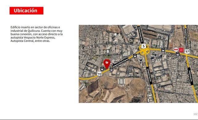 ProCasa La Dehesa (Oficina Carloshurtado Propiedades) ARRIENDA Espectacular Edifico Corporativo en excelente ubicación, construido en Avenido Américo Vespucio Norte en la Comuna de Quilicura. Edificio de oficinas, ubicada en el sector de oficinas e industrial de Quilicura. Cuenta con muy buena conexión, con acceso directo a la autopista Vespucio Norte Express. Oficinas Habilitadas. Posibilidad de arrendar amoblado. Gastos Comunes: UF 33 aprox. Horario de Operación: 24/7 DESCRIPCIÓN del EDIFICIO: Superficie total: 1.420m2 aprox. (2 Niveles) Estacionamientos: 54 Unidades incluidas en el valor del arriendo Valor del Arriendo: UF 0,33 / m2 + IVA Valor arriendo mensual: UF 463 + IVA Valor del arriendo en pesos: $ 18.200.000 + IVA (Aprox.) Condiciones del Arriendo: * Oficinas Habilitadas * Posibilidad de arrendar amobladas * Gastos Comunes: UF 33 aprox. * Horario de Operación: 24/7 . Procasa: 57682