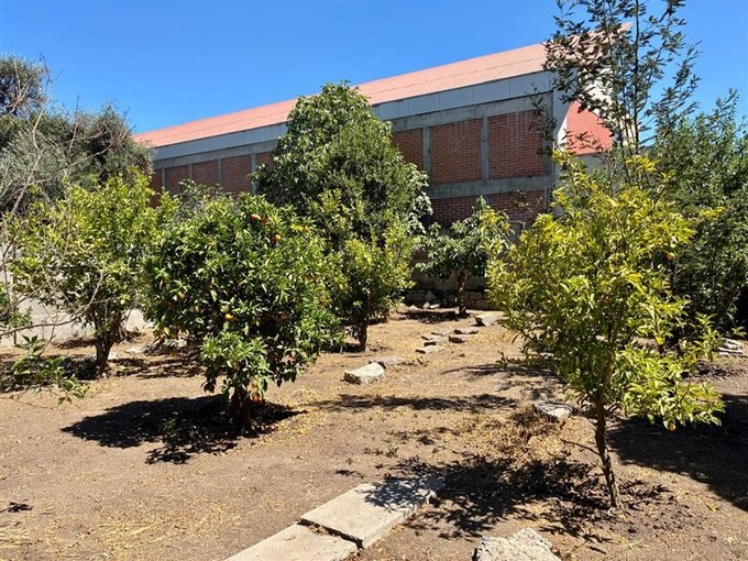 Posee jardines, estacionamientos y un gran terreno interior, actualmente con árboles frutales.