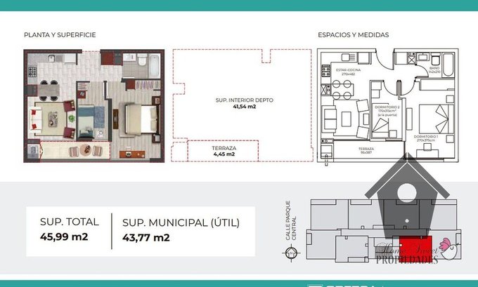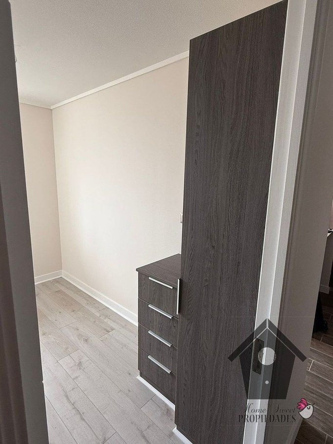 Piso de porcelanato en living comedor, cocina, pasillo y baño. Piso flotante en dormitorios. Ventanas con marcos de PVC blanco y vidrios termopanel. cubierta de granito en zonas húmedas de la cocina. Closet en dormitorio principal y Mueble para colgar y cajonera en dormitorio secundario, Closet de pasillo con instalacion para lavadora. Cocina amoblada y equipada con encimera a gas de cuatro platos, horno eléctrico empotrado y campana extractora, agua caliente con cálefon en el costado de la terraza. El departamento se entrega con Luminarias y cortinas roller instaladas.