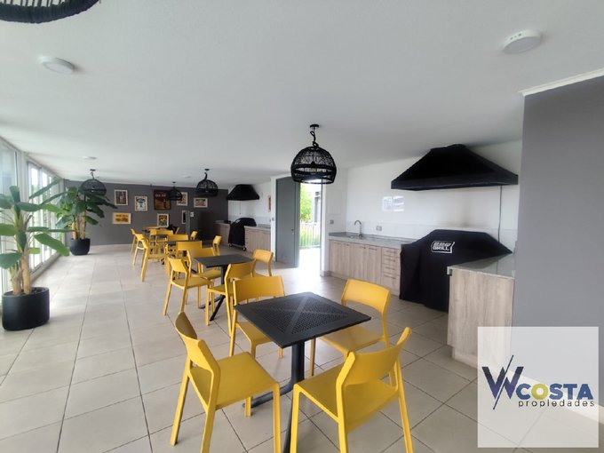 Espacios comunes con sala para eventos con quinchos y piscina